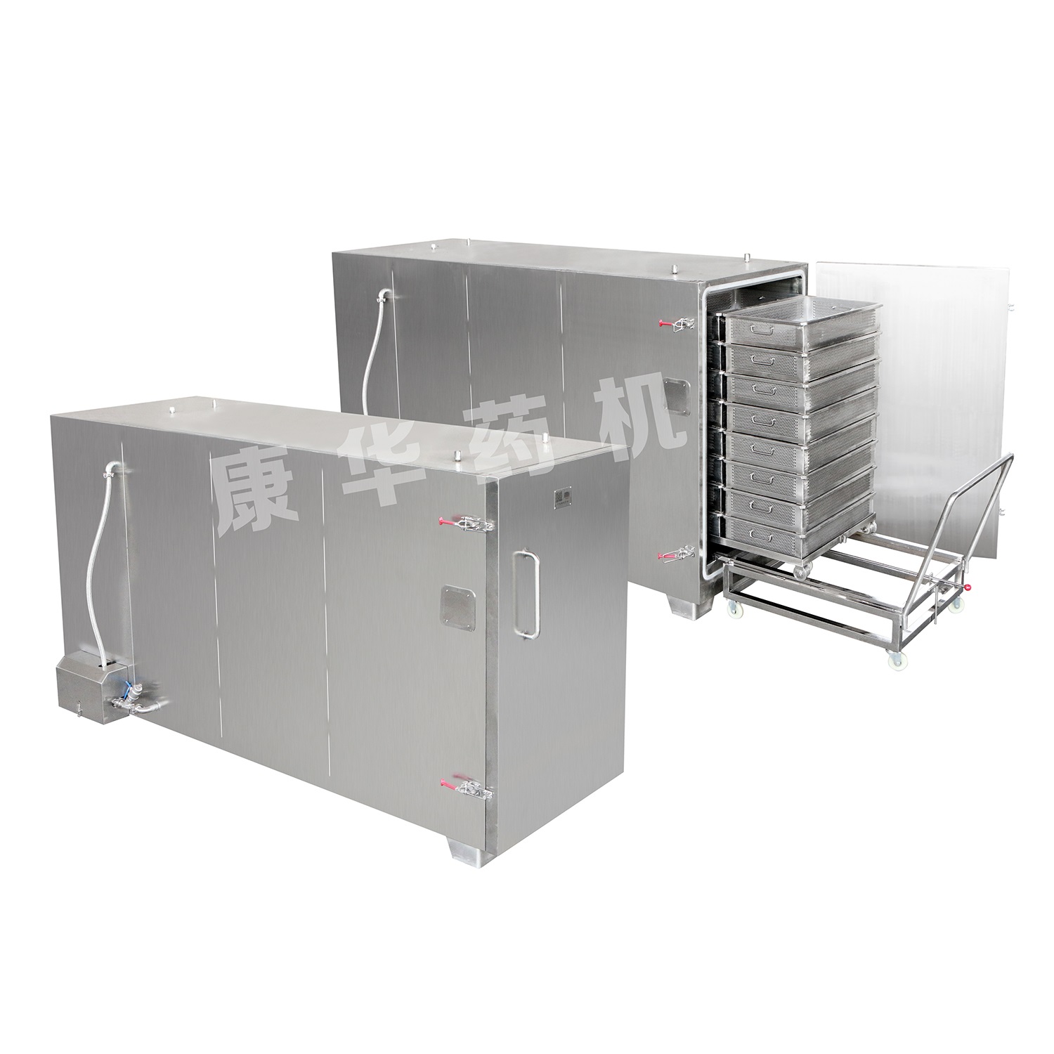 化效果好,速度快,避免有效成分流失等優(yōu)點(diǎn)。方形箱體的有效容積率達(dá) 99%,開(kāi)機(jī)(閥門(mén)的開(kāi)閉)、箱體的密封、抽真空、真空度控制、蒸潤(rùn)、關(guān)機(jī)等過(guò)程