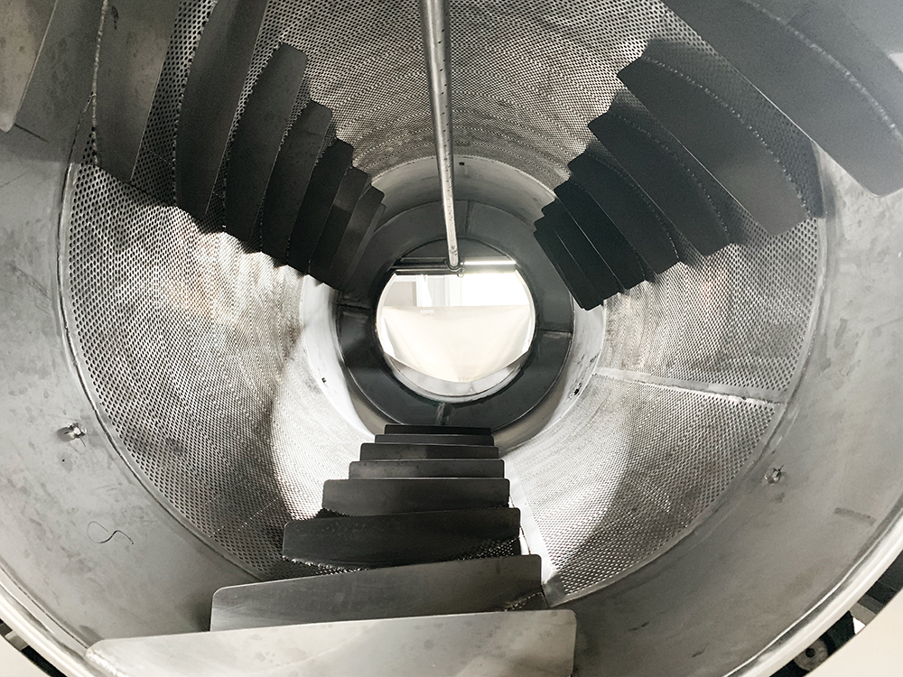 物料由進(jìn)料斗送入,啟動高壓水泵、轉(zhuǎn)動筒體,物料在被筒體內(nèi)螺旋板推進(jìn)的同時進(jìn)行漂洗、噴淋和高壓水沖洗。