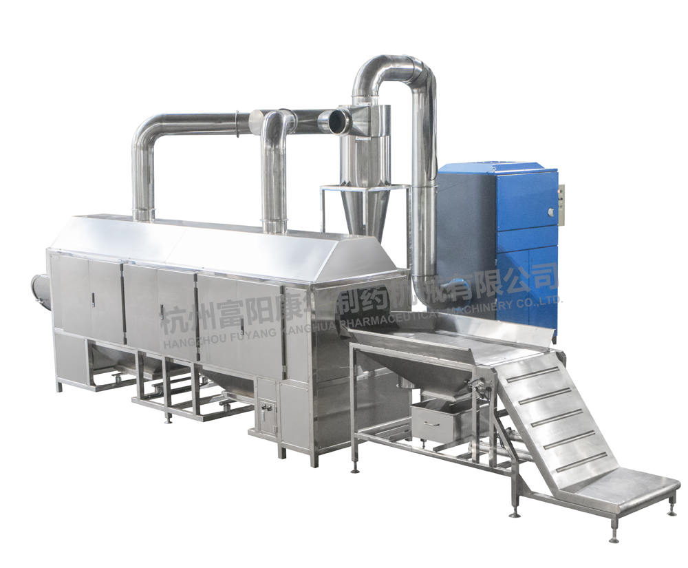 利用物料的自重、摩擦等原理,采用“不用水”的方式除去其附著在表面的雜物,泥沙,對于花草類藥材,具有良好的去灰除沙效果,避免了有效成分的流失(類似:干洗機(jī))。