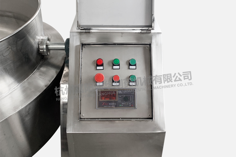 工作原理:將物料倒入鍋內,加熱使鍋體內的溫度均勻升溫,待鍋體達到所需溫度時即可炙藥加工。出料時,啟動電機開關將鍋體旋轉一定角度使物料方便排出或轉動渦輪手輪,鍋體會自動傾斜翻轉,倒出液料。
