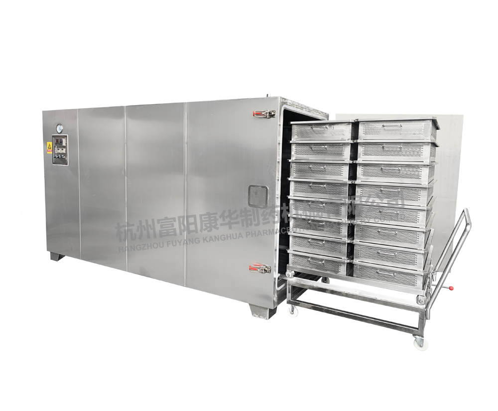 主要特點:箱體上部安裝減壓閥、溫度表,便于觀察和操作控制;方形箱體的有效容積利用率為99%。蒸汽經(jīng)減壓后直接加熱,箱內(nèi)升溫快,受熱均勻,節(jié)約能源;采用料盤裝料。符合GMP認證要求。
